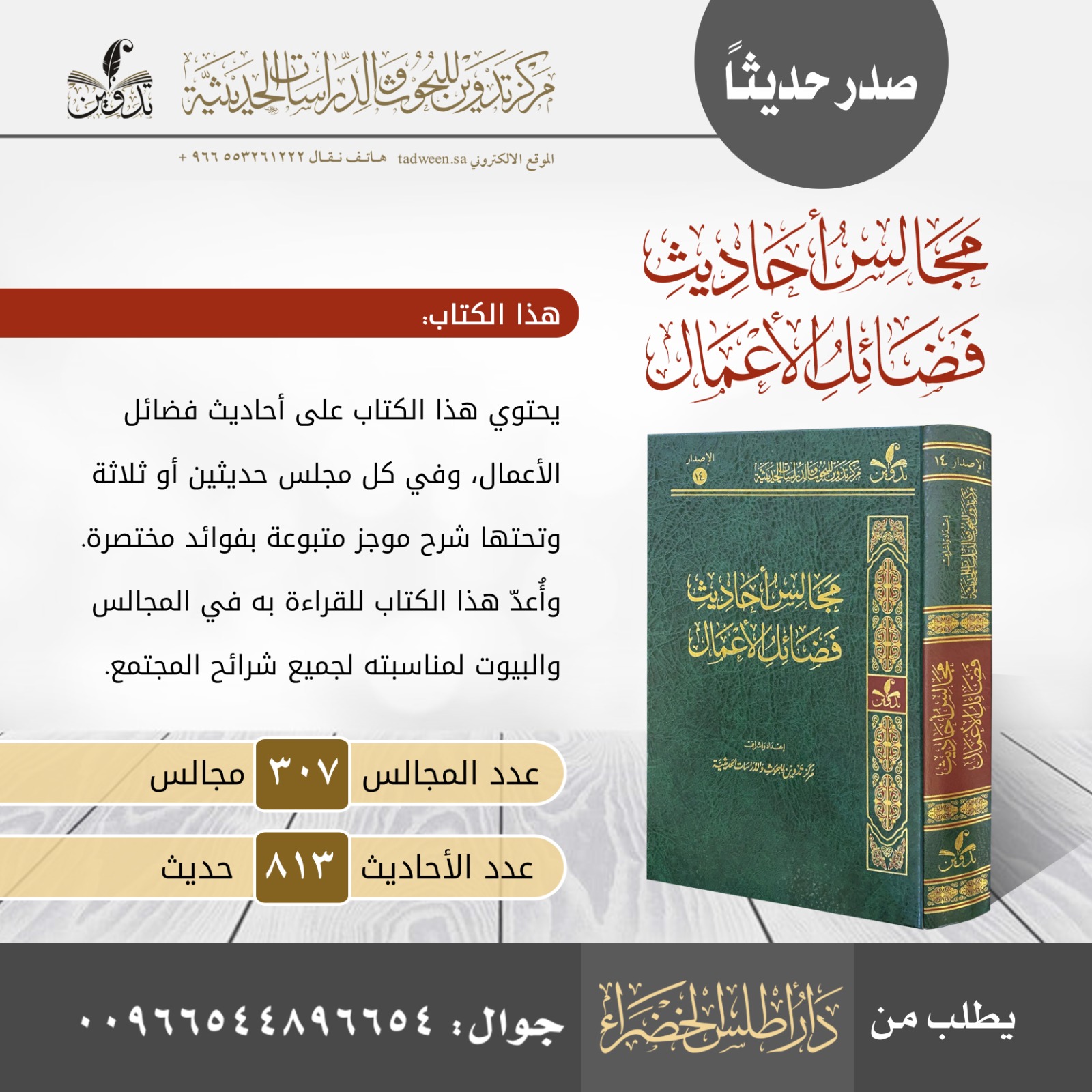 أصدر المركز إصداره الرابع عشر: مجالس أحاديث فضائل الأعمال، ويحتوي هذا الكتاب على أحاديث فضائل الأعمال، ورتب على مجالس عددها (307) مجالس، وكل مجلس يحوي حديثين أو ثلاثه في الأعم الأغلب، وعدد الأحاديث في الكتاب (813) حديثا، وفي كل مجلس شرح مختصر للأحاديث وفوائد موجزة.
