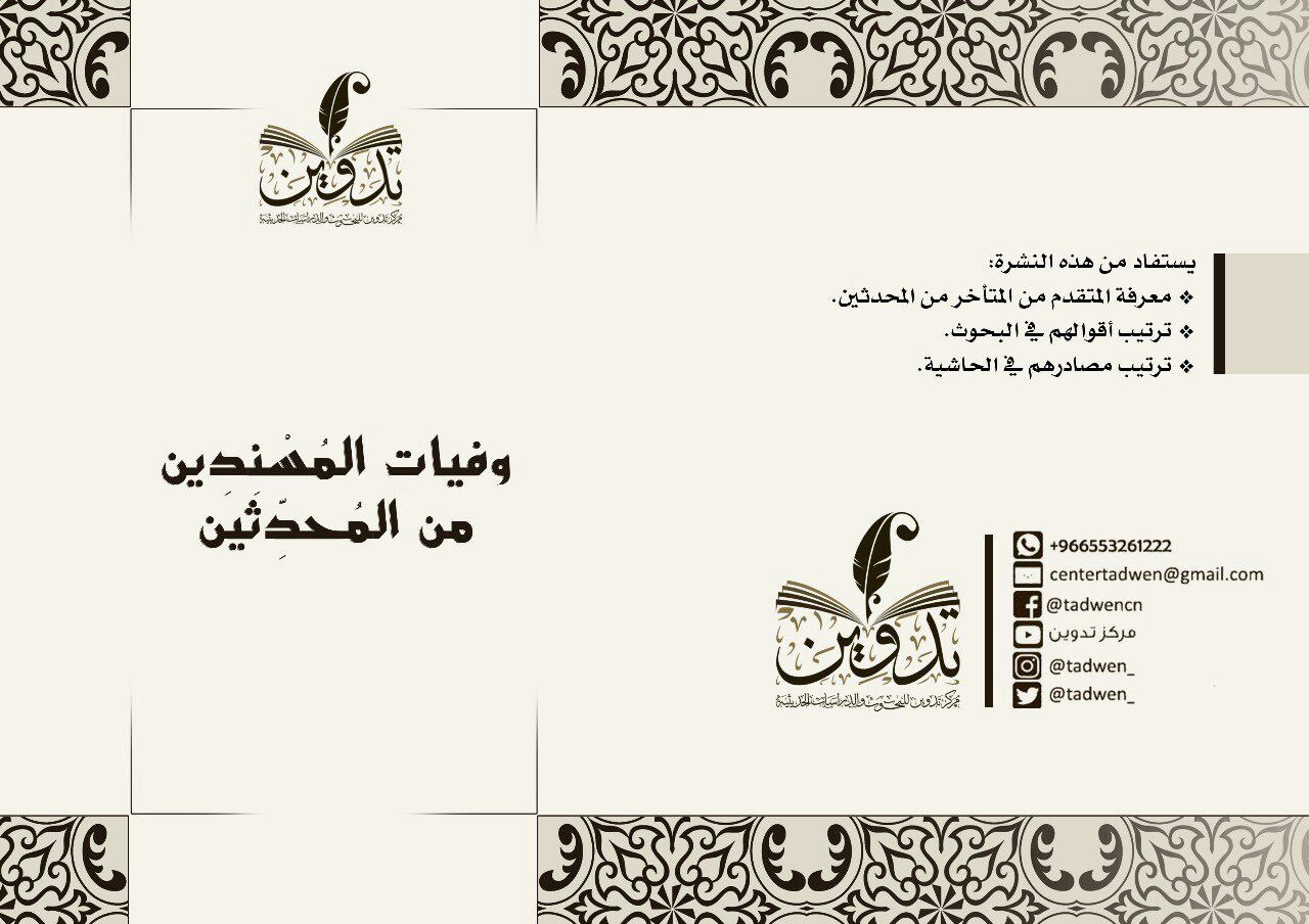أصبح بإمكان طلاب وطالبات الدراسات العليا في السنة وعلومها الاستفسار عن موضوعات الرسائل العلمية والتي يرغبون في تسجيلها في جامعاتهم؛ من خلال قواعد بيانات مركز تدوين؛ أو بالتواصل مع المركز من خلال البريد الإلكتروني: centertadwen@gmail.com - أو الواتس آب: 966553261222